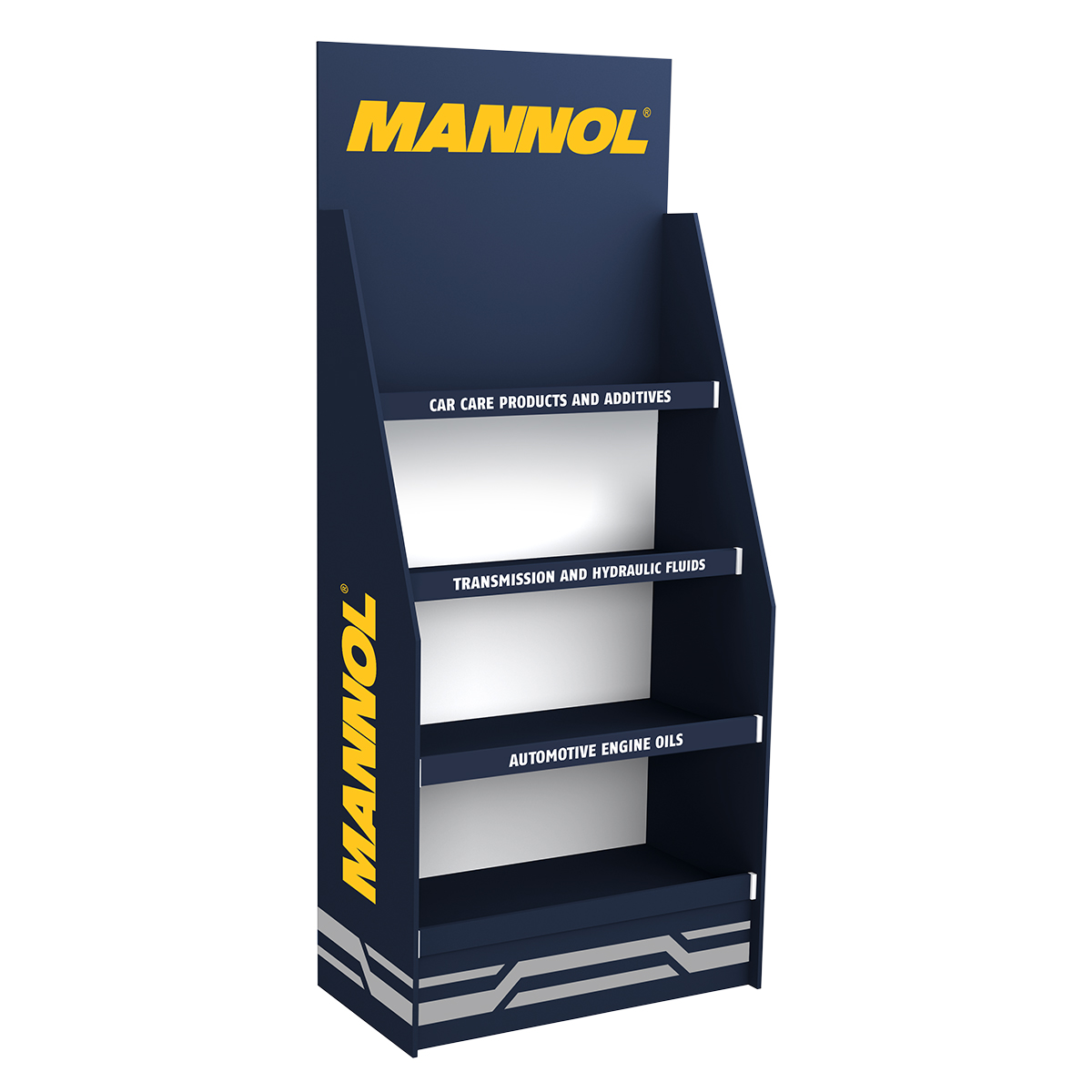 Cardboard display with MANNOL logo - easy to set up, transport and use. Made of sturdy cardboard.